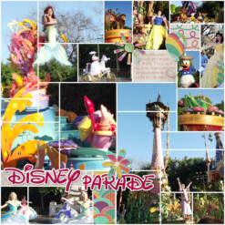 My other goal is to print a second book that showcases even more pictures (I did take more than 2000) in a collage-type format. There are a number Scrap Templates that can accommodate multiple photos and these are so easy and simple to create. Scrap Templates 48 Page Layouts was used to create the “Disney Parade” page and I plan to fill a second book with pages of this style.