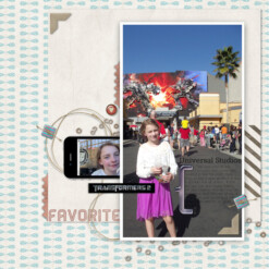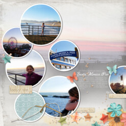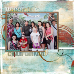 I have two scrapbooking goals for these vacation pictures. One is to create some pretty, traditional pages using some of the Scrap Templates, Scrap Frames and various Page Paks with corresponding colors and elements to really play up the pictures. I decided not to stick with one page pak as there are so many with great colors and elements that I can pair up with my pictures. I’ll have these pages printed in a photo book with a cover that includes a group picture of our travel party.