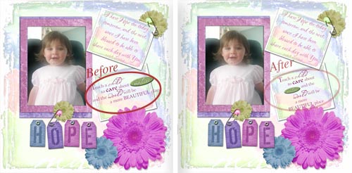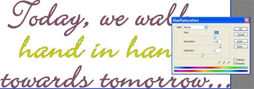1) Color It! To change the color of a Title or word art, adjust it using the Hue/Saturation Adjustment Filter. To colorize a portion of a title or word art, select the portions of the word art you would like to change, by either using the Magic Wand Tool or the Lasso Selection Tool, and change the color to suit your layout by adjusting the Hue/Saturation (Adjust>Hue/Saturation).